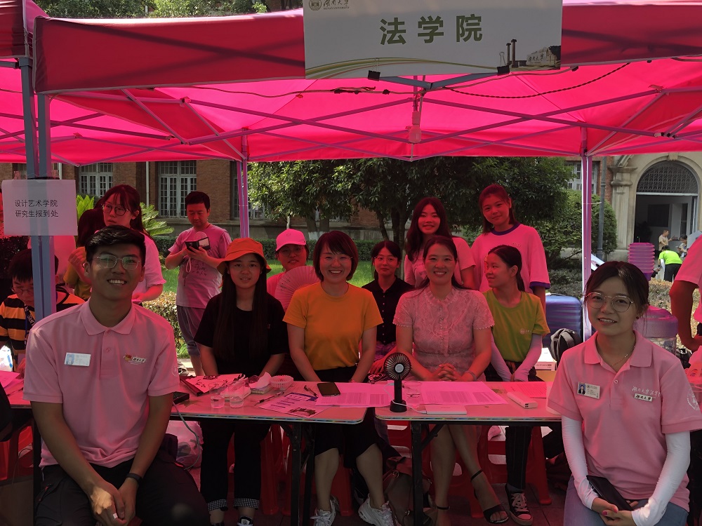 (罗英副书记、郑琼英老师与迎新志愿者合影)