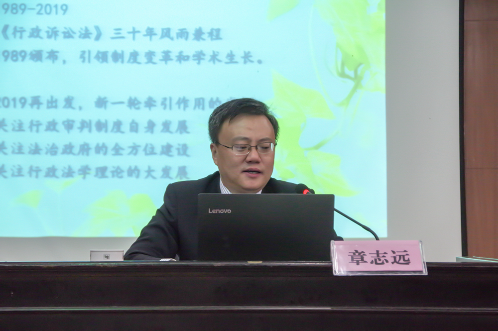 2019年10月13日上午,题为“新《行政诉讼法》实施中的热点问题”的学术讲座在qy球友会模拟法庭顺利举办。华东政法大学行政法学科带头人章志远教授主讲,徐琳副教授参与会谈。讲座由公司党委副书记罗英副教授主持,湖南省高级人民法院行政审判庭副庭长周婷婷等实务界人士和球友会师生聆听了讲座。