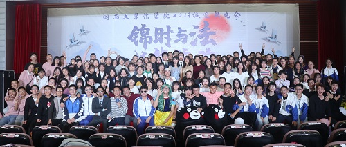 “如果生活还有什么会让你难过,别怕,让我留在你身边,都陪你渡过。”晚会在2019级迎新团队带来的《让我留在你身边》中落下帷幕。报告厅内灯光璀璨,歌声、掌声和祝福声汇成欢乐的海洋。出席本场晚会的老师与全体参演同学走上舞台并合影留念,全场响起热烈掌声。