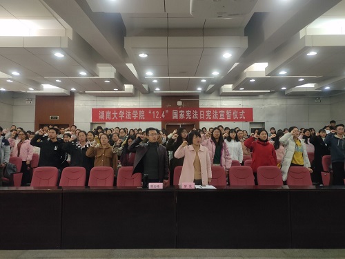 为进一步推进宪法宣传教育,弘扬宪法精神,12月4日中午,千亿球友会组织全校员工代表在球友会模拟法庭参加宪法宣誓活动。公司党委副书记、副教授罗英指出,宣誓仪式对于激励教育国家工作人员忠于宪法、维护宪法权威和保障宪法实施具有积极意义,通过这样的仪式,希望千亿球友会的员工们也能保持对法律的信仰和忠诚,以实际行动保障宪法的实施、树立宪法的权威,为全面依法治国贡献青春力量。