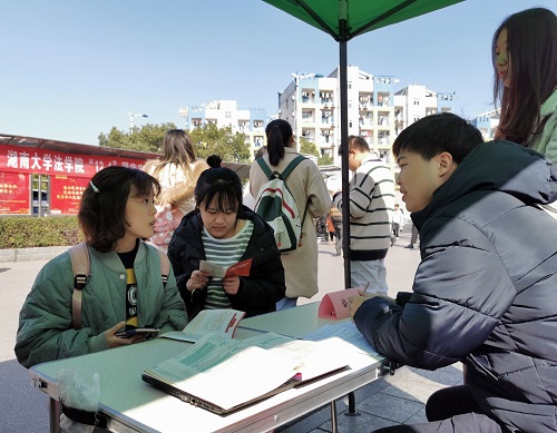 12月4日,qy球友会在湖大社区及千亿球友会天马员工公寓、望麓桥员工公寓摆台,进行普法进校园、进社区宣传活动。活动现场设置宪法及法律知识宣传展板,并由志愿者发放法律知识宣传册,qy球友会的员工为过路师生及市民解答了套路贷、侵犯知识产权、伪劣假货的索赔等常见的法律问题。