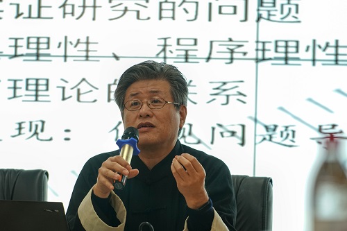 本次论坛为期一天,分为4个专题,共有18篇论文在论坛上进行了报告和交流。会议的第一个专题是北京大学球友会白建军教授以《有什么方法,就有什么视界——以商业银行刑事风险研究为例》为题向与会成员作主旨报告。首先,白教授旗帜鲜明地指出实证研究与规范研究二者之间的关系,即实证研究离不开规范研究,但是规范研究可以没有实证研究。实证研究是建立在规范研究基础之上的经验研究,是法学研究方法中不可替代的一种存在方式。纯粹的规范研究和思辨结论往往只能回答应然层面的问题,而实然层面的问题则需要实证研究来解决。其次,白教授认为做实证研究的学者应当有一种使命感,一要发现法学知识之间的相互印证,二要做一些“留得住”的成果作为我们这个时代的法律的客观记录。三要发现“黑天鹅”,几乎所有的理论,都是尚未被证否的假设,那些人们以为是正确的理论,往往不是人们所预想的那样。四要发现理论的边界和局限。五要发现适合实证研究的问题。六要发现实证研究的工具理性和程序理性。七要发现事实和理论之间的联系,这也是法学实证研究最难的部分。最后,白教授指出目前做实证研究的学者主要依托于裁判文书网,并以法院的案由作为建立样本库的基本根据,这种方法确实简单且能够反映现实法律世界中的一些现象,但应当认识到,案由体系实际上是已经根据现有制度、主观判断等因素加工过之后筛选出来的一个分类体系,而事实原本的状态也许不是这样的,白教授向与会成员分享了自己突破案由体系建立样本库的具体尝试。