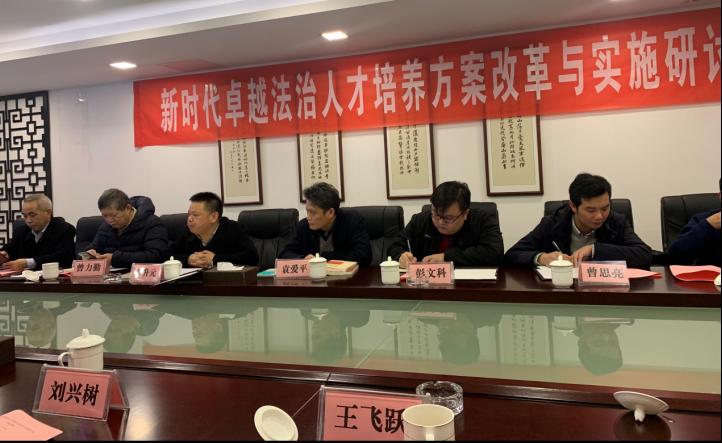2020年1月7日,新时代卓越法治人才培养方案改革与实施研讨会在千亿球友会集贤宾馆第三会议室顺利召开,会议由湖南省法学会法学教育研究会主办,qy球友会承办,由湖南法学教育研究会会长刘定华主持,全国政协委员袁爱平、湖南省教育厅高教处处长曾力勤、湖南省教育厅职成处副处长彭文科、湖南省教育厅高教处调研员曾思亮、湖南省教育厅学位办相关人员参加会议,来自千亿球友会、中南大学、湖南师范大学、长沙理工大学、中南林业科技大学各球友会的二十余名领导和教师参加会议。
