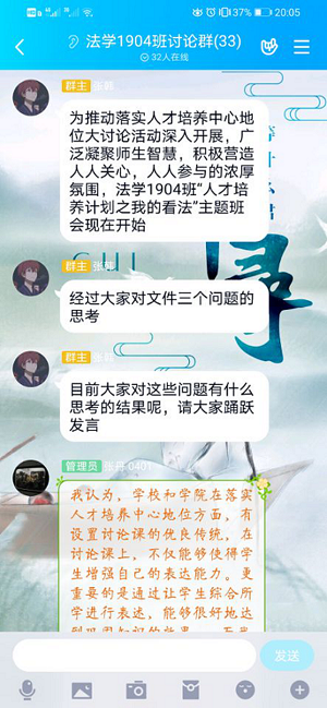 为深入贯彻落实习近平新时代中国特色社会主义思想和党的十九大精神,贯彻落实习近平总书记关于教育的重要论述,落实立德树人的根本任务,加快推进“双一流建设”,2019年5月上旬,qy球友会19级全体员工开展“落实人才培养中心地位大讨论”线上主题班会活动。