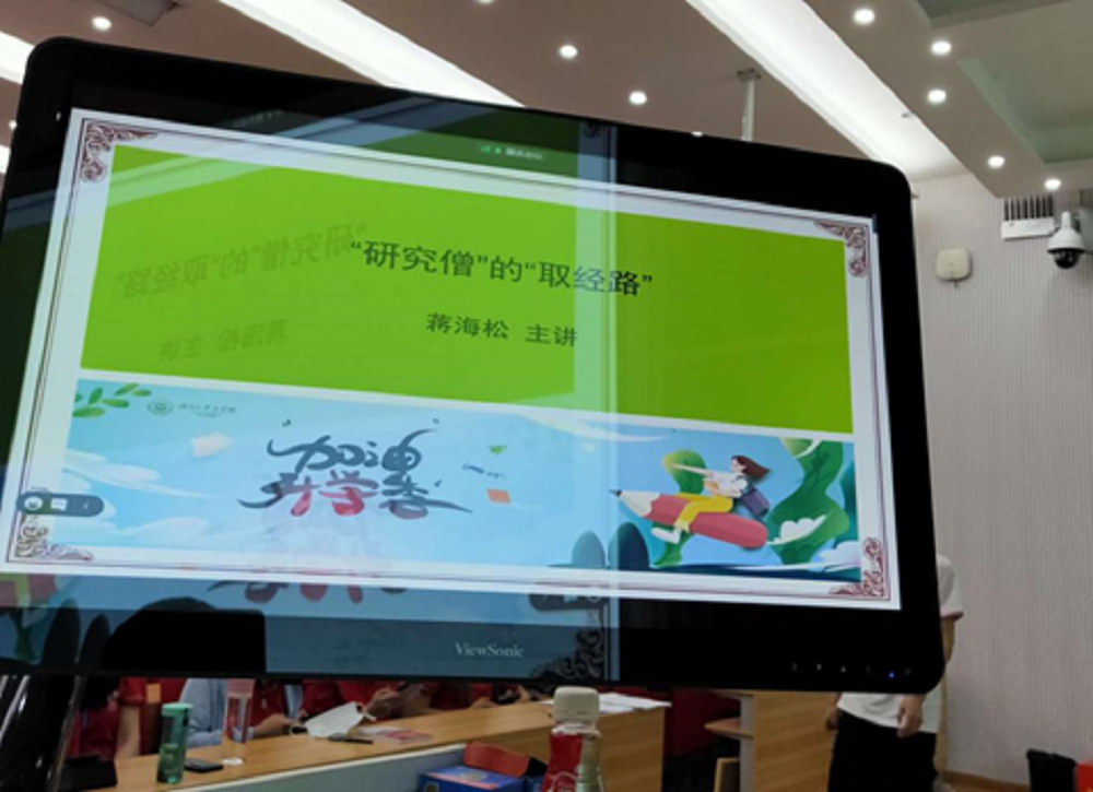 蒋海松副教授报告了《“研究僧”的取经路》。他幽默风趣地以《西游记》中唐僧的口头禅引出哲学三问,即“来自何方?去往何处?所为何事?”他围绕这三方面展开演讲。首先,对于为什么要成为一名研究生的问题,蒋教授认为读书是员工的本分,希望同学们可以珍惜机会,进行非功利地阅读,集中阅读经典著作。科学研究中,研究生同学要修行心性德行,把读书作为一种修行,对于世俗诱惑要有定力。蒋教授还以时务学堂的校史,激励同学们在学术研究中关怀社会,担当公义。文科同学还要做到文理兼修,学习理工科同学对于规律和可量化标准的重视,同时要重视思想的自由碰撞和交流,进行自由、理性、多元地思考,提高个人的德行。