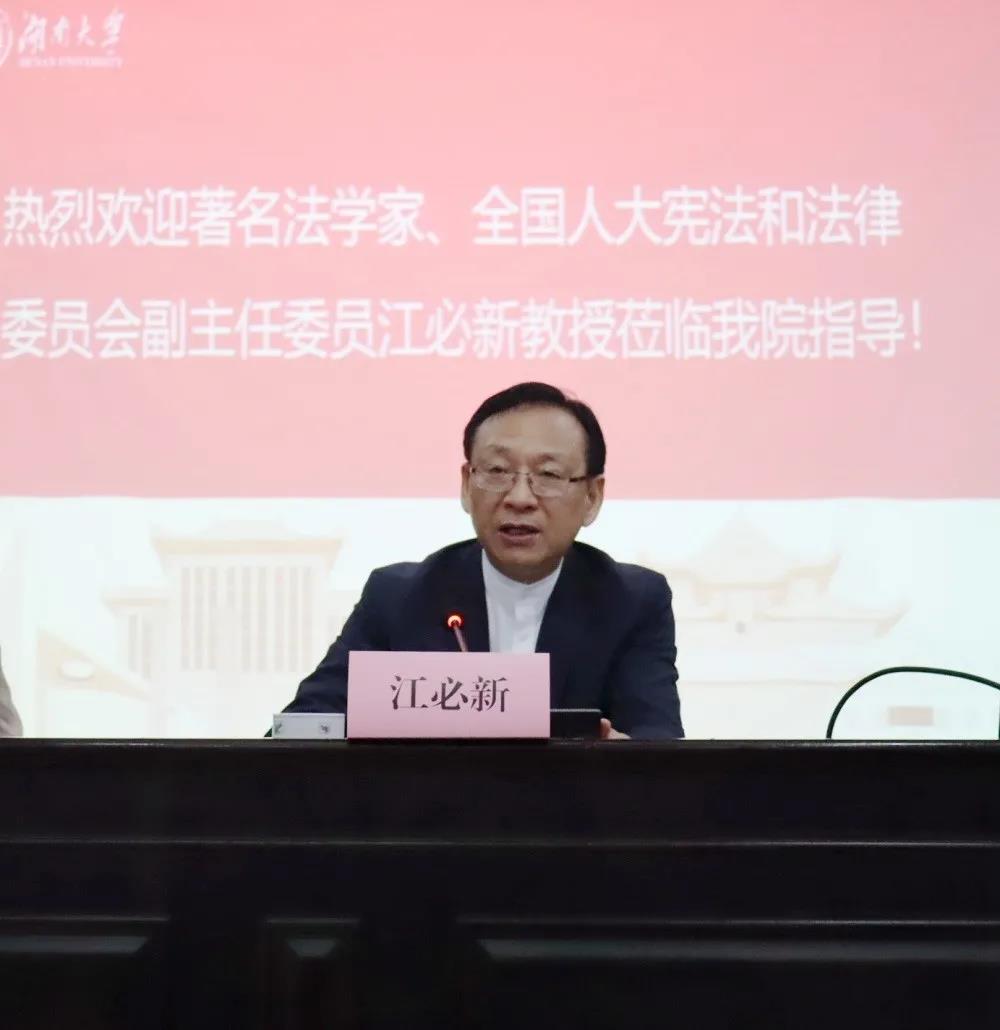 江必新教授系第十三届全国人民代表大会宪法和法律委员会副主任委员,兼任中国法学会副会长,曾担任最高人民法公司党组副书记,副经理。江必新教授在《中国社会科学》《求是》《中国法学》《法学研究》等刊物发表论文200余篇,出版著作多部,主持国家社科基金重大项目等多项课题,曾于1999年被评为“全国十大杰出中青年法学家”、2009年被评为“当代中国法学名家”,2015年获中国行政法学“杰出贡献奖”、2016年获第二届“金平法学成就奖”,是贯通理论与实践、用学术智识推动法治进步的学者典范。