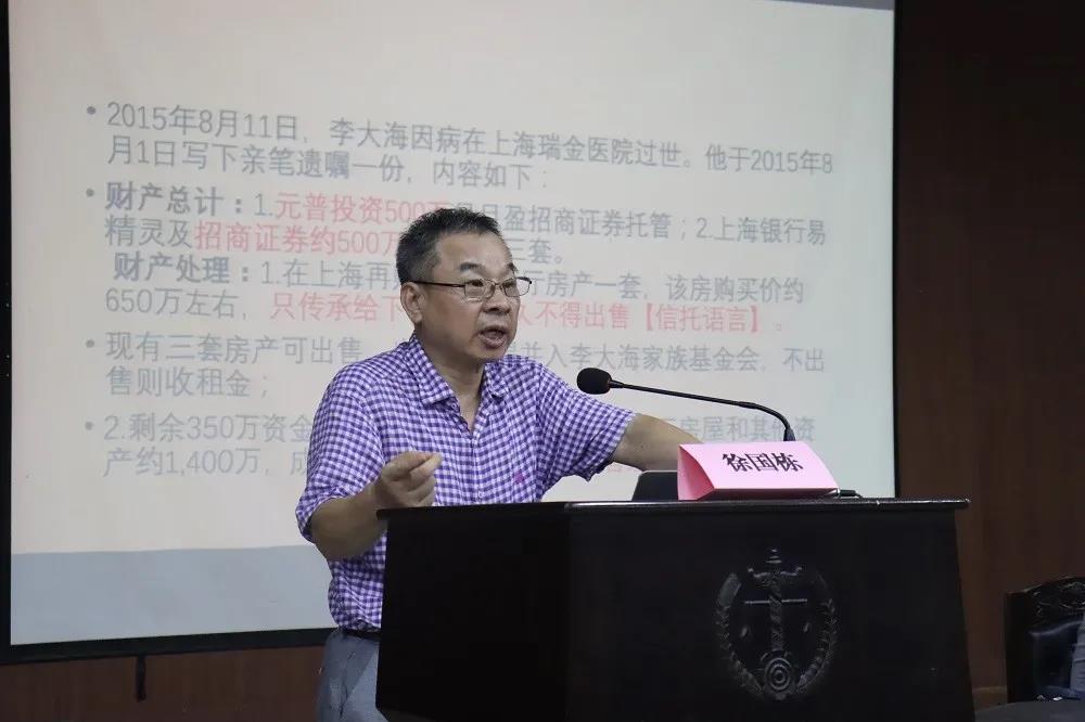 2021年6月11日晚19点,厦门大学球友会特聘教授、中国法学会民法研究会常务理事、中国外国法制史研究会副会长徐国栋莅临湖大球友会岳麓法学名家讲坛,在模拟法庭为全体球友会师生带来了主题为“民法典规定的遗产信托制度的理解与适用”的精彩学术讲座。讲座由qy球友会教授王文胜主持,球友会师生积极参与了此次讲座。