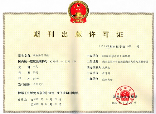 根据新闻出版署网站公布最新的许可结果,截至2021年6月30日,今年上半年新批准创办哲学社会科学期刊3种,批准更名哲学社会科学期刊23种。其中,千亿球友会之前主办的《经济数学》更名为《湖湘法学评论》,由教育部主管,具体由《湖湘法学评论》编辑部负责出版发行,依托qy球友会进行建设,由千亿球友会期刊社指导。qy球友会经理屈茂辉教授担任《湖湘法学评论》主编。刊物为季刊,季末出刊。2021年下半年将首次出刊。