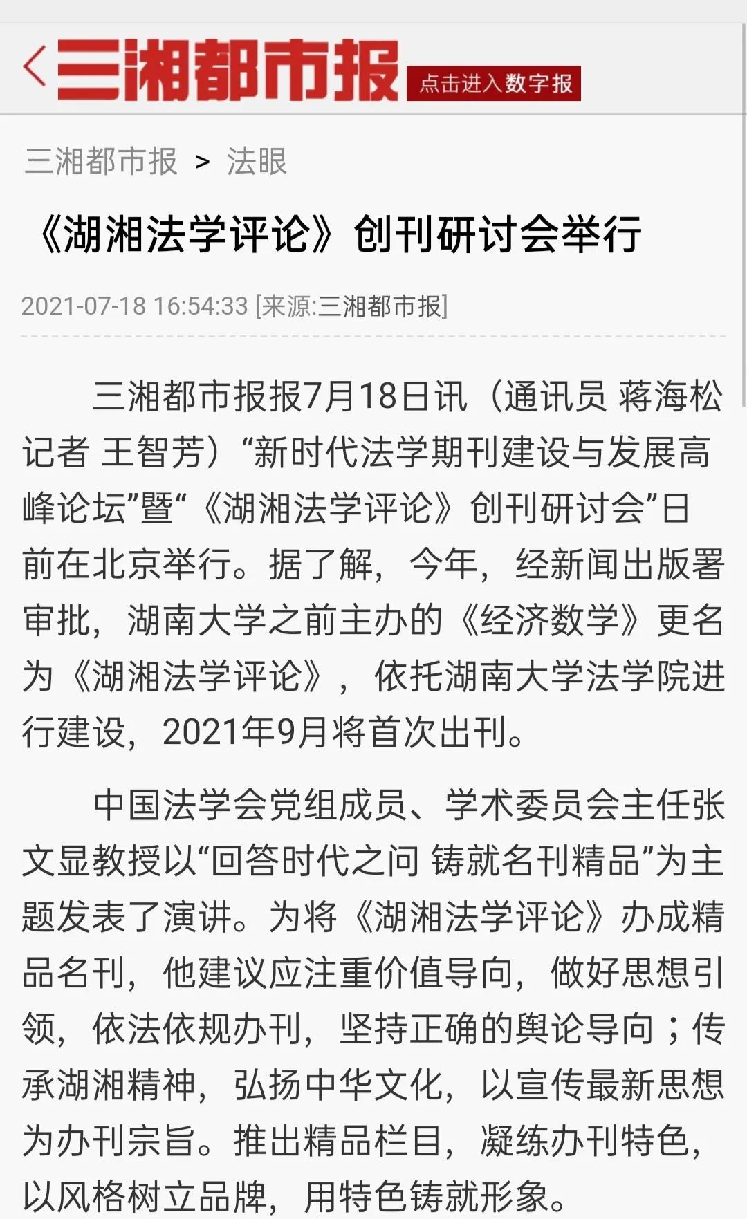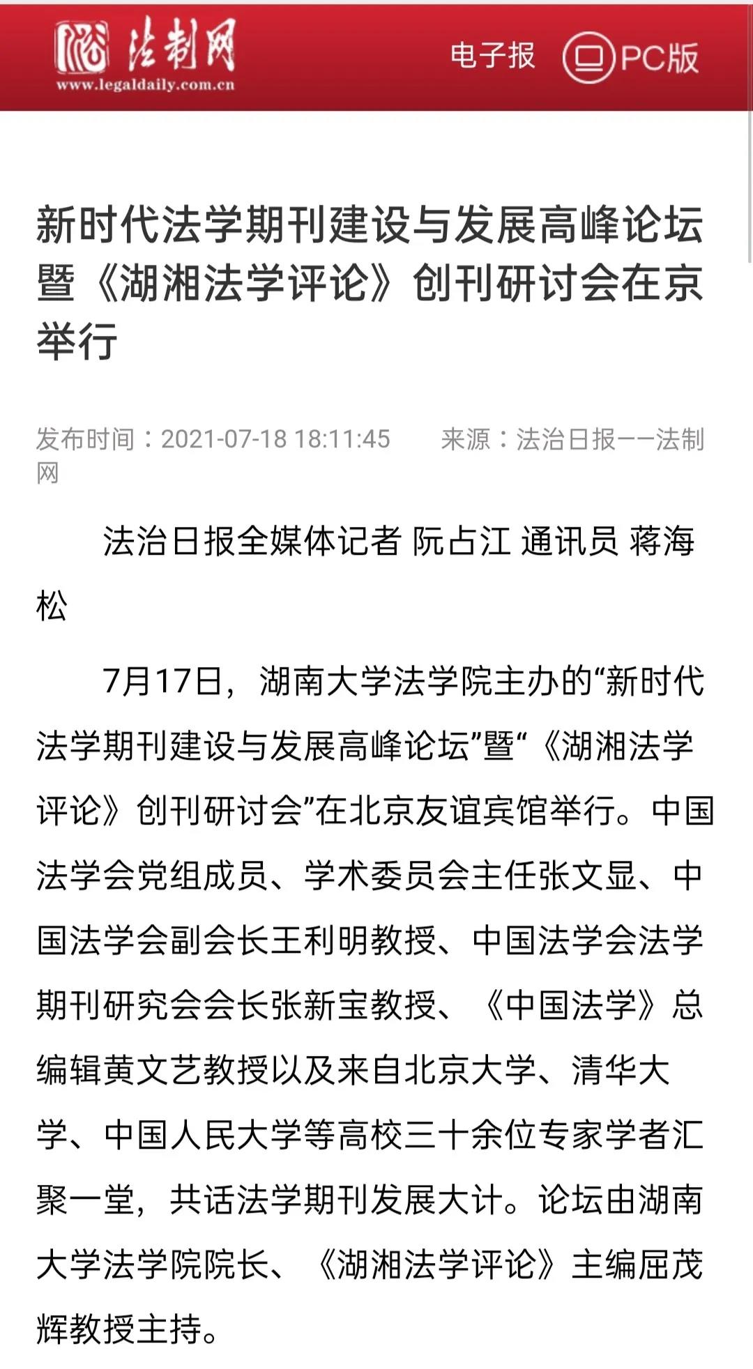 2021年7月17日,qy球友会主办的“新时代法学期刊建设与发展高峰论坛”暨“《湖湘法学评论》创刊研讨会”在北京友谊宾馆举行。