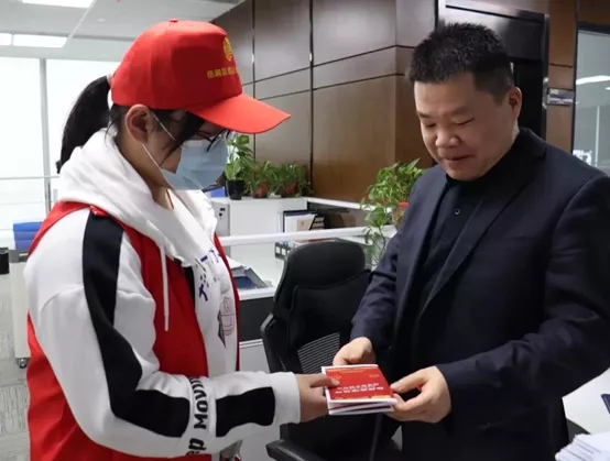 2021年11月29日下午,qy球友会团委、员工会、研究生会联合湘江集团开展“法伴企业——弘扬宪法精神,护航企业发展”活动。志愿者们首先向湘江集团员工分发宪法知识宣传手册,并结合手册内容向企业员工普及宪法知识,深化企业员工对宪法的了解。随后,志愿者们就我国国家宪法日的设立、宪法与工作生活的联系及作为企业员工对宪法的期待与展望等问题对企业员工进行随机采访。企业员工充分表达对宪法和法治的理解与感悟,在企业内部营造尊重宪法、遵守宪法、学习宪法的良好氛围,为真正实现法治进企业、法治促发展添砖加瓦。