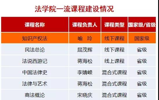 蒋海松《法律与艺术》课程、宋晓庆《商法概论》课程入选省级一流本科课程。至此,公司拥有国家一流课程1门、省级一流课程5门,为金课建设奠定了良好基础 。