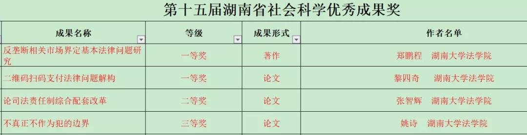 其中黎四奇教授、郑鹏程教授获一等奖 ,张智辉教授获二等奖,姚诗教授获三等奖