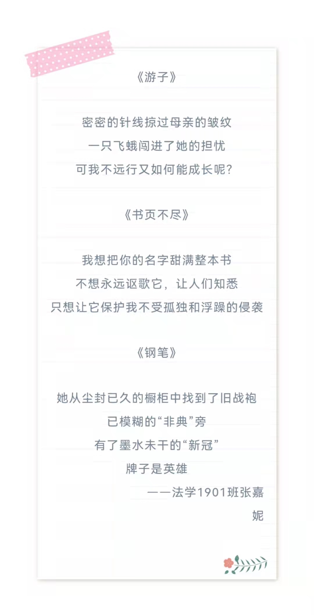 青章桃月,情系三八。春光烂漫之际,2019级同学集体为母亲、女老师、女性朋友送上饱蘸了爱与温柔的话语。我在乳燕呢喃之际撷一篮春光奔向你,你可听到我轻叩你心扉的声音?
