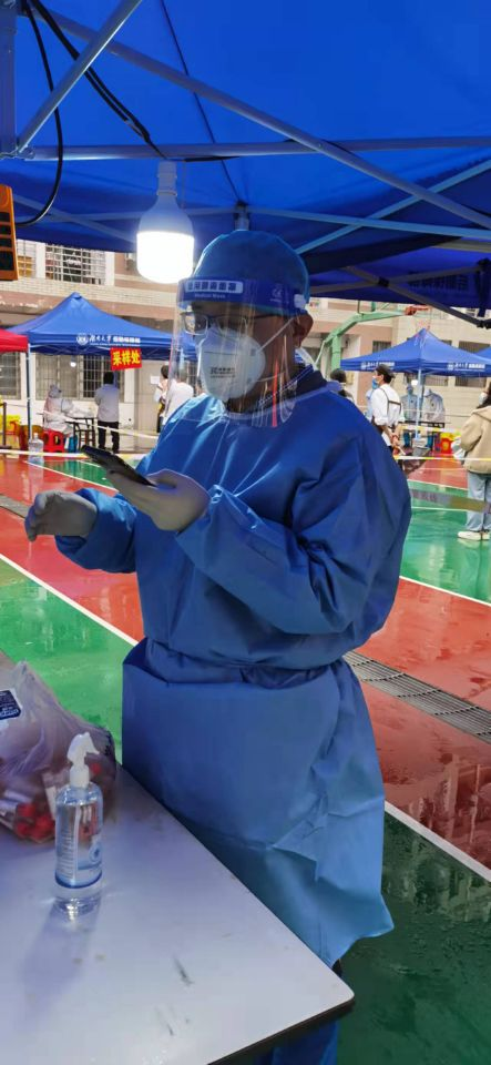 李勤通老师是一位成果丰硕的法制史青年学者。疫情袭来之下,他没有置身事外,而是带着对湖大对同学们的浓烈感情,主动请缨担任志愿者。他协助医护人员采核酸,引导员工,维持现场秩序,录入二维码,登记相关信息,辛勤工作。