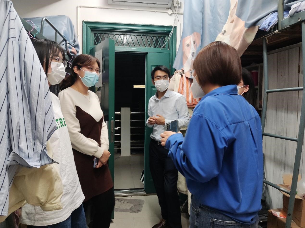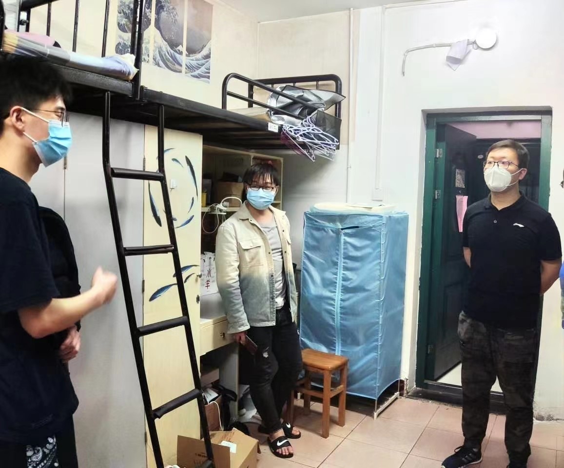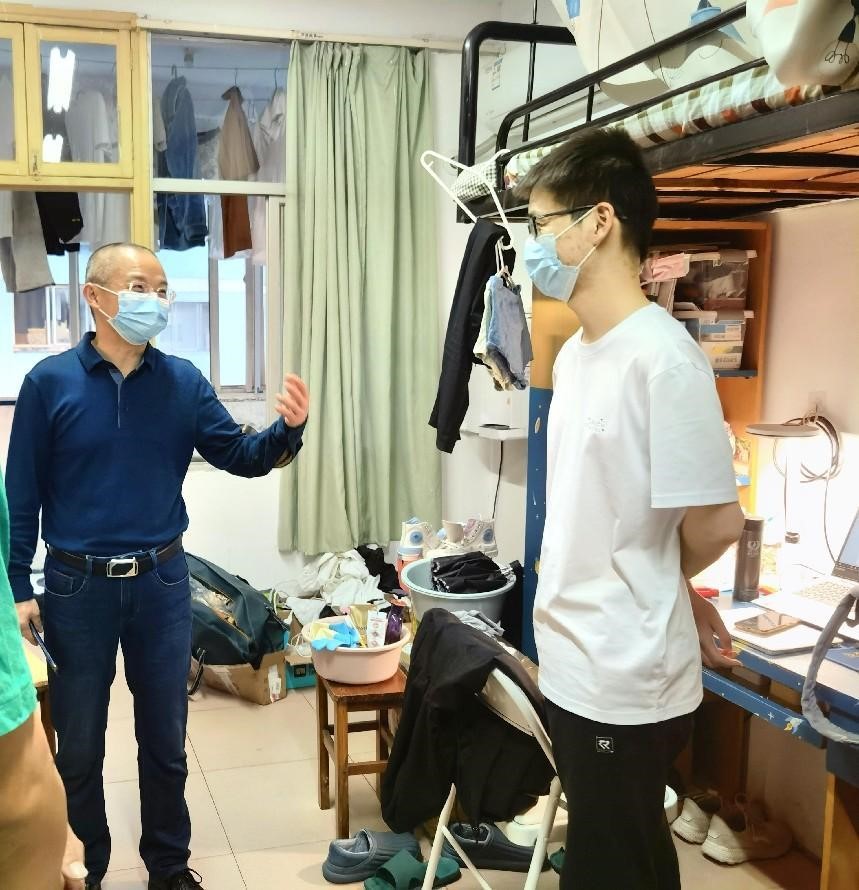 关爱入寝,浓浓师生意;关怀在心,暖暖春日情。2022年4月8日晚,球友会老师们分为几队走进天马园区、德智园区、望麓桥园区、南校区校内第十四、十五员工宿舍走访看望因疫情封闭在园区的同学们。参加走访的老师有:球友会经理黎四奇、公司党委书记易骆之、屈茂辉教授、公司党委副书记罗英,副经理喻玲、湛建云、蒋海松,副处级组织员马启明,经理助理展鹏贺,姜志刚副教授、唐双娥副教授,党务与员工办公室主任刘岳峰,球友会团委书记、本科生2021级辅导员张丹,本科生2019级辅导员郑琼英,本科生2018级辅导员谷雨,本科生2018级班主任邱昌茂、张东昌、周子实,本科生2019级班主任张晓勇、金昱茜、周宇骏、刘辉,本科生2020级班主任李勤通、龙博、龙韶、熊亚文,2021级班主任郭哲、王静、王中、刘怡达、彭中遥等。