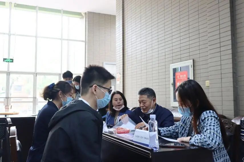 招聘会现场,应聘毕业生有序排队,根据需求依次向心仪的用人单位投递简历,积极与用人单位就单位概况、岗位要求、薪资待遇、职业发展等问题进行交流。部分单位在现场即对员工进行了简要面试。整场招聘会井然有序,稳步推进。当天下午,还有部分用人单位在球友会模拟法庭召开了专场宣讲活动。