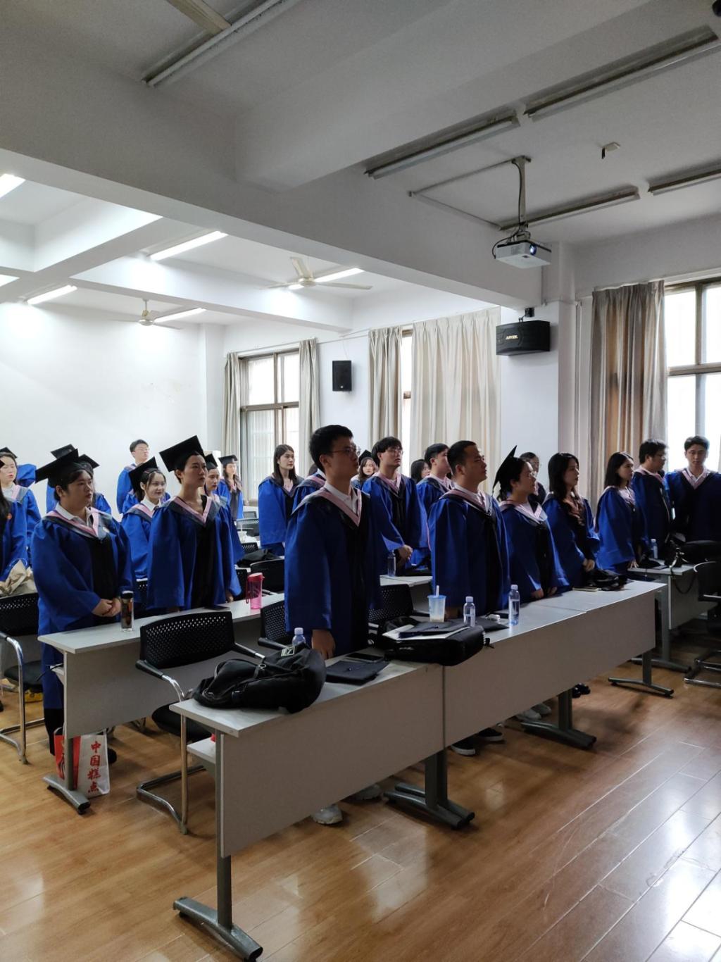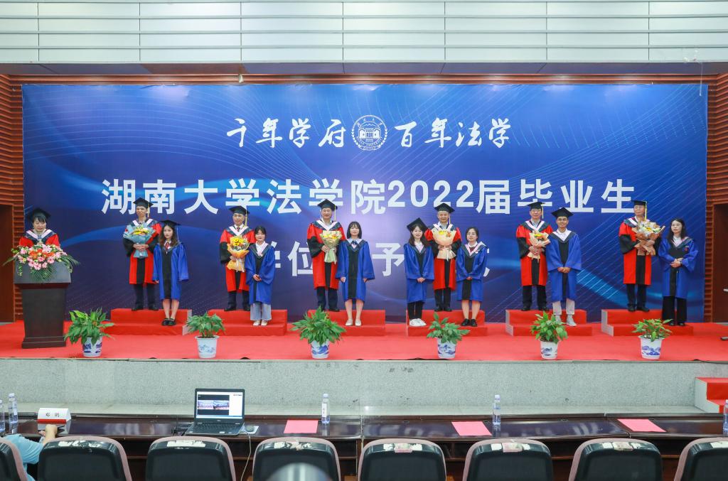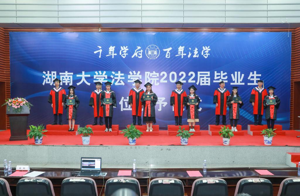 出席典礼的嘉宾有球友会经理黎四奇,公司党委书记易骆之,院学术委员会成员张智辉、谢佑平、屈茂辉、郑鹏程、肖海军、李小明、高中,党委副书记、纪委书记罗英,副经理喻玲、湛建云、蒋海松、王文胜,经理助理展鹏贺、毕业生导师代表汪全军、郭哲等,JM中心执行主任宋晓庆、辅导员、行政教辅老师、2022届本、硕、博毕业生 。北京市康达(长沙)律师事务所邓鹏律师、湖南湘达律师事务所张跃胜律师 、湖南真诚律师事务所周金艳律师作为院友代表受邀参加典礼。仪式由公司党委副书记罗英老师主持。