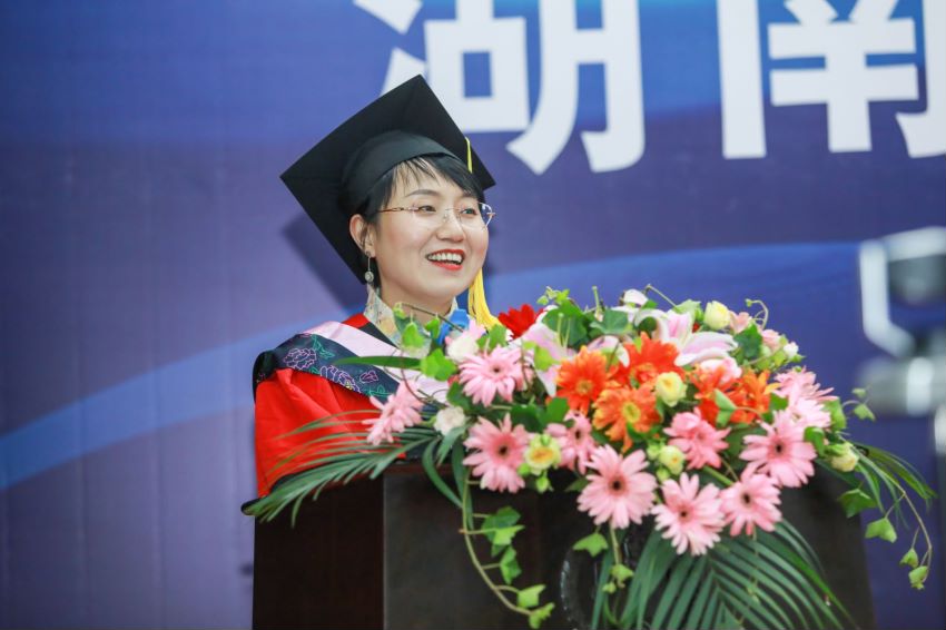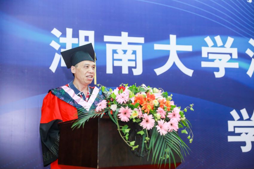 学位授予仪式在在激昂的国歌声中拉开序幕,球友会经理黎四奇教授以“做一个善良而幸福的人”为题发表毕业致辞。他代表公司向毕业生表示最热烈的祝贺并致以最美好的祝愿,向毕业生们分享了自己对于法律正义的思考和对幸福的感悟。他提出:人的一生,就是一个挖掘、寻觅、认知自己的过程。无论际遇如何,我们都应尽可能,我们必须尽力去做一个善良、有底线、有温度的湖大法律人!人生不易!事虽难,路虽长,但是只要我们我们砥砺前行,就没有比脚更长的路,就没有比人更高的山峰。勉励同学们无论艰难困苦,我们都必须永不言弃、坚忍不拔地去为自己的生命注入意义,一步步地走向我们的终点。