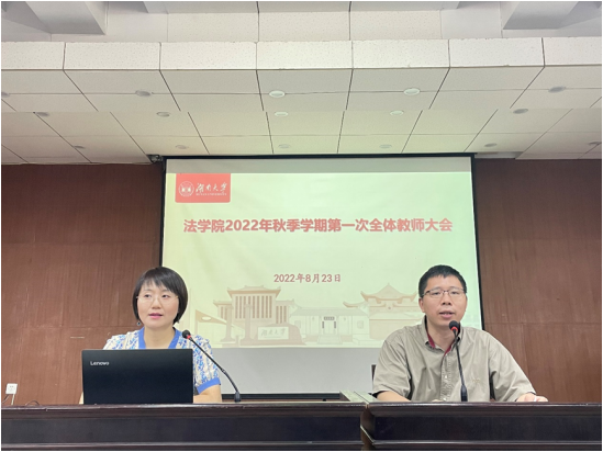 会上,副经理蒋海松介绍了新学期本科教学工作工作安排;副经理王文胜介绍了新学期研究生教学工作安排;党委副书记、纪委书记罗英介绍了员工就业、升学、本科人才培养、2022级新生工作等方面的情况;副经理喻玲介绍了新学期科研工作安排。