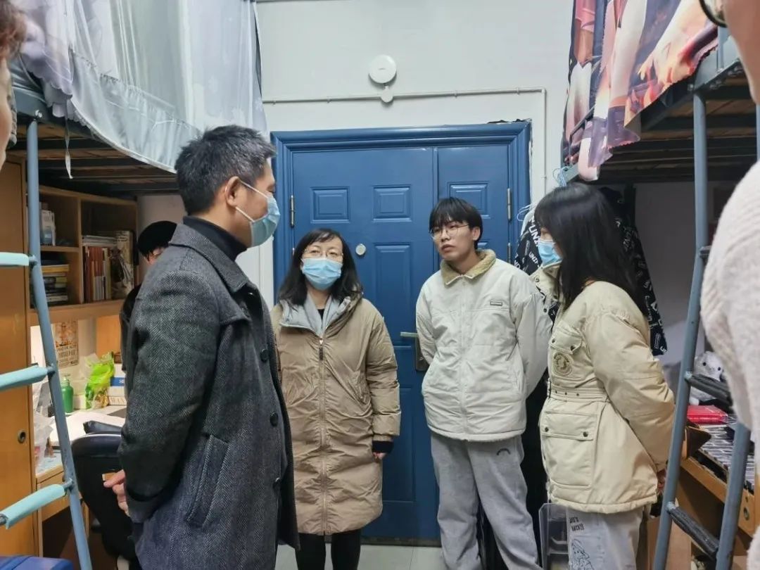 在走访过程中,老师们与同学们亲切交谈,了解了大家在课业学习和日常生活中的各方面情况,同学们亦积极分享了自己在学习生活中的心得体会。对于同学们关注的疫情防控、教学与期末考试安排等问题,老师们结合公司现阶段的安排给出了细致答复,也鼓励各位同学就教学安排、日程规划等问题积极建言献策。老师们也在走访过程中提醒同学们要做好寝室的卫生工作,叮嘱大家在冬日里注意防寒保暖。