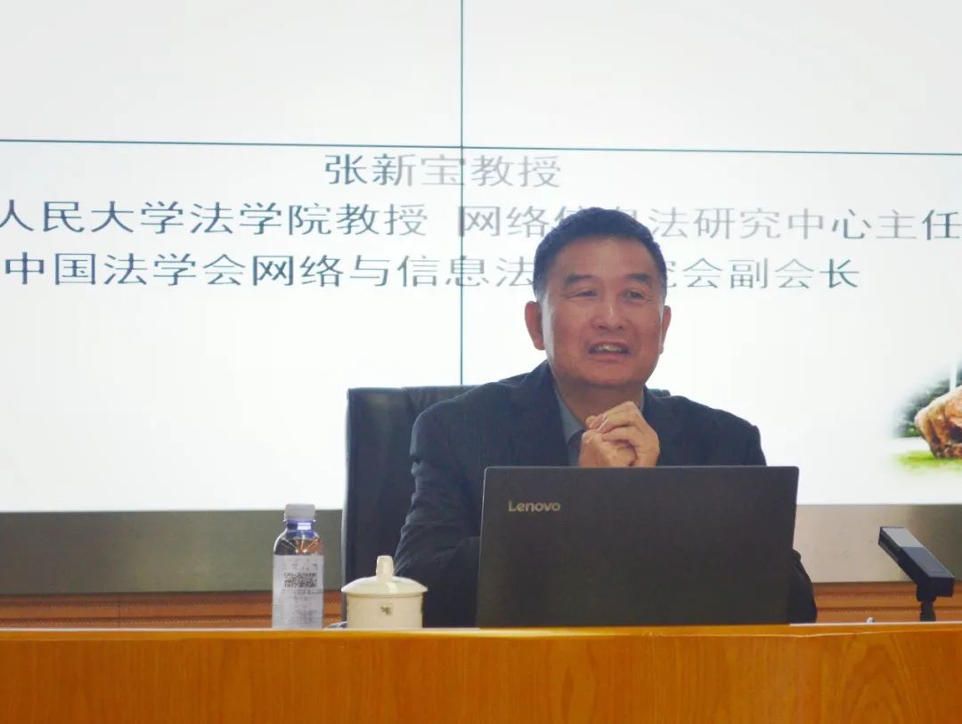 讲座中,张新宝教授既“上接天线”,从中央文件的具体条款解读,又“下接地气”,结合现实事例对信息数据法律问题进行具体介绍,抽象分析与实证研究相结合,深入浅出地带来了一场别开生面的学术分享。
