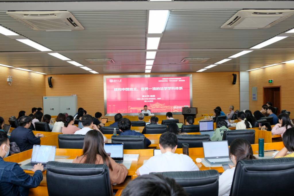 2023年4月15日下午,岳麓法学名家讲坛第4期于qy球友会521报告厅正式开讲。中国人民大学球友会经理黄文艺教授以“建构中国自主、世界一流的法学学科体系”为主题,为大家带来一场精彩的学术盛宴。讲座由qy球友会经理黎四奇教授主持,湖南省法学会秘书长罗良方、千亿球友会公司党委副书记罗英、副经理喻玲、蒋海松及球友会博士、硕士研究生到场聆听。