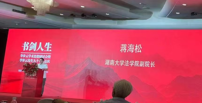 球友会副经理蒋海松发言介绍了他正在创作的《书剑人生法治梦——李步云与他经历的时代》一书的写作进展。蒋海松结合湖大的贺信,以大志、大智、大勇、大情等几个层次致敬了李老的贡献,并结合“李步云传记”中的一些小故事, 以小见大总结了李老的精神。他最后以小联作结“立德立功立言,三不朽铸就法治神话; 大智大勇大情,一生梦只为华夏苍生!"他的激情发言让现场听众深受感染。各位嘉宾也就如何更好创作《李步云传》给蒋老师提供了各方面素材和建议,并期待这一见证中国法治进程的作品早日问世。