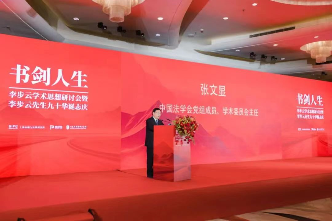 中国法学会党组成员、学术委员会主任张文显在现场致辞中表示,“李步云”三个字已经成为新时期、新时代中国法学的鲜明符号,李步云学术思想已经成为中国法学一道亮丽的风景,“书剑人生”正是李步云先生非凡经历的真实写真。张文显认为,李步云学术思想集中体现为四种精神:人民至上精神、反思批判精神、变革建构精神、兼容包容精神。“以上这四种精神深深地感染了我,感染了我们这一代人,正是李老师的学术思想引领我们一路前行。”张文显说。