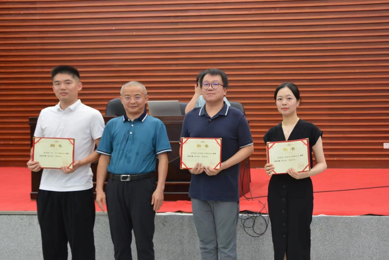 罗英副书记向新生及家长介绍2023级本科辅导员龙芷蔚老师及各班新生班主任,随后由黎四奇经理为2023级新生班主任周宇骏、何宁、李婧嵘老师颁发聘书。