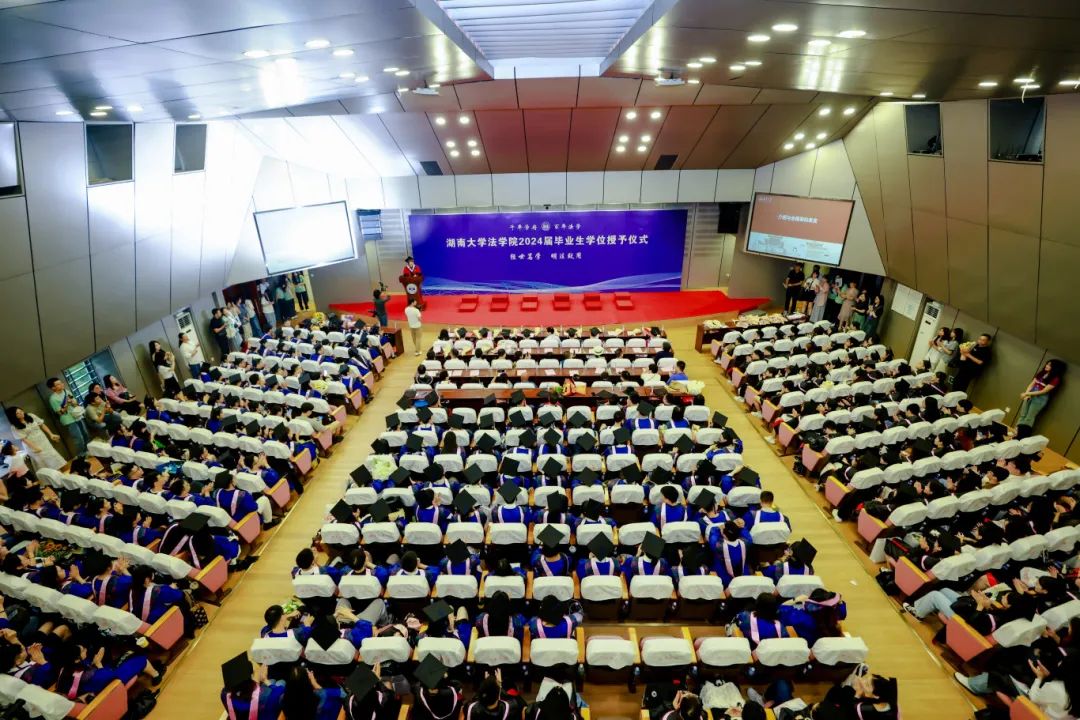 “法振邦国,勇担千秋伟业;律正人心,笑看一路繁花”。2024年6月19日下午,qy球友会2024届毕业生学位授予仪式在千亿球友会逸夫楼隆重举行。又一批敢为人先、实事求是的学子圆满完成学业,从湖大整装出发,踏上崭新征程,奔赴广阔天地。