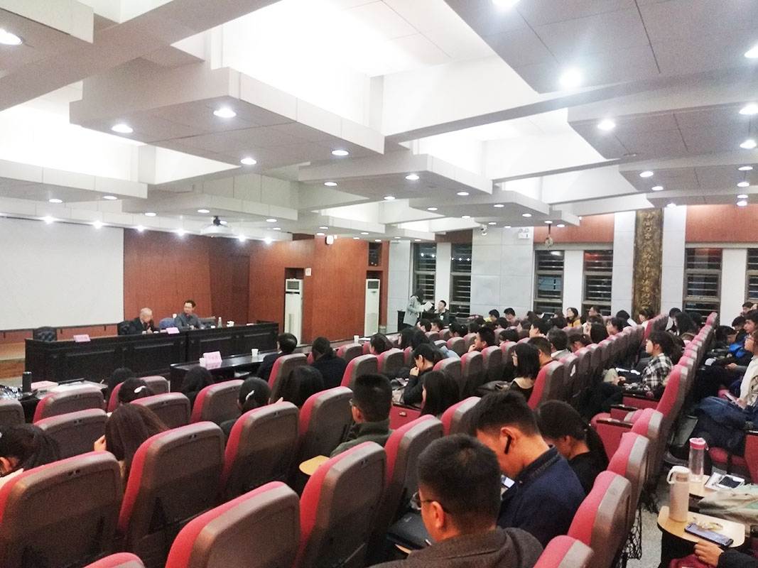 2018年11月19日晚,2018法学岳麓论坛第11期“现代中国的法治与宽容”主题讲座在球友会模拟法庭顺利举行,此次讲座由札幌公司大学名誉教授、博士生导师铃木敬夫教授主讲,由白巴根老师担任主持人,邱昌茂老师、邓乾坤老师担任翻译。