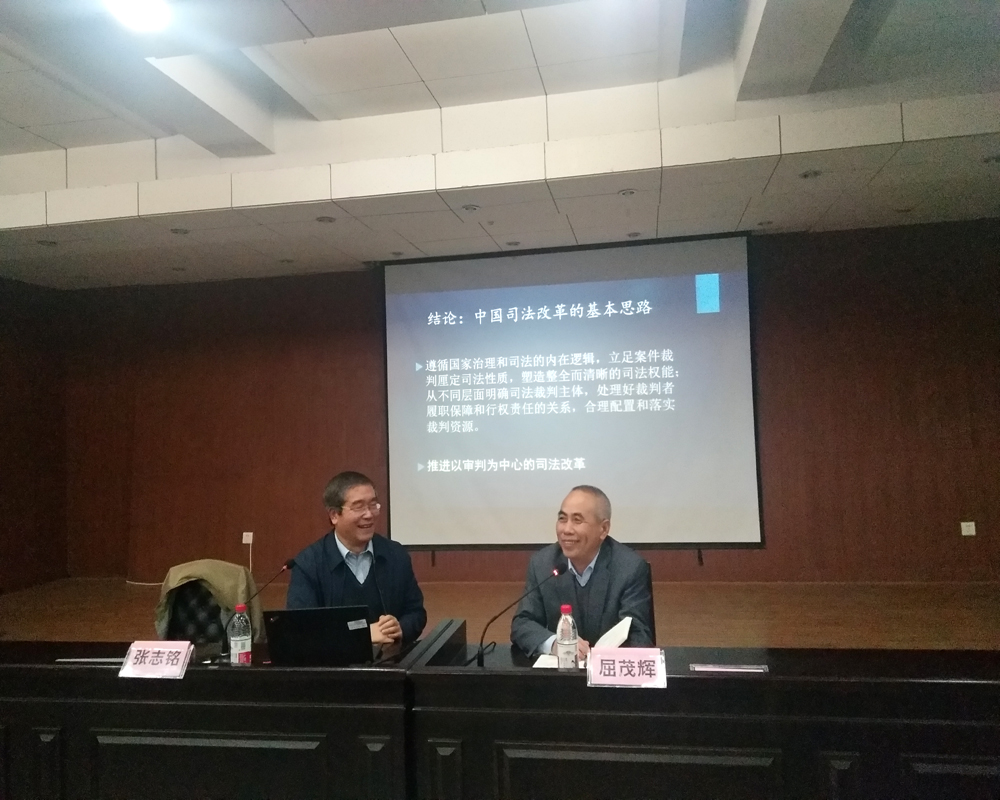 2018年11月10日晚,主题为“中国司法改革的内在逻辑”的学术讲座在公司模拟法庭顺利举行。本次讲座特别邀请了中国人民大学教授、博士生导师、中国立法学会研究会副会长张志铭老师担任主讲人,由qy球友会经理、教授、博士生导师屈茂辉老师担任嘉宾及主持人。