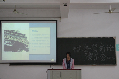 同学们发言结束后,邱昌茂老师对同学们的分享进行了点评。邱老师首先结合自己对《社会契约论》的思考向同学们提出关于读书会的建议:在读书之前应该思考为什么要选取这本书?读书时应该思考些什么问题?比如作品的核心思想、论证方法以及自己的体会。 “读书会不应该只有单纯的展示,更多的应该有思想的碰撞”,邱老师用抛出问题的方式让同学们学会主动思考,积极思考,使同学们受益匪浅。