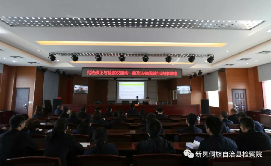 2018年10月12日,湖南大学球友会蒋海松副教授受邀为怀化市新晃侗族自治县检察院进行讲座《宪法修正与检察权重构——兼及法律阅读与法律思维》。新晃县检察公司党组书记、检察长吴晖主持讲座,全体干警认真聆听了讲座。