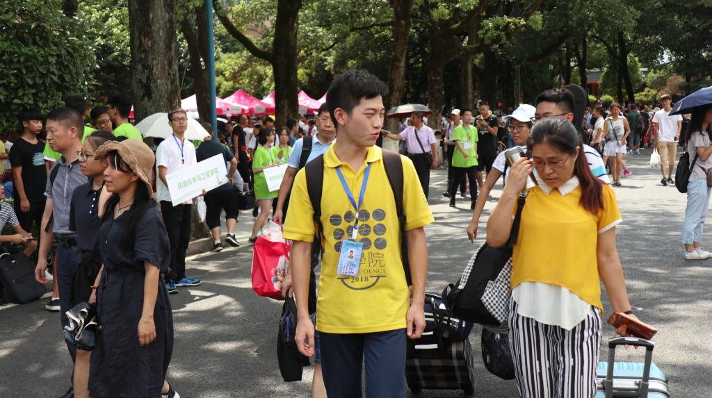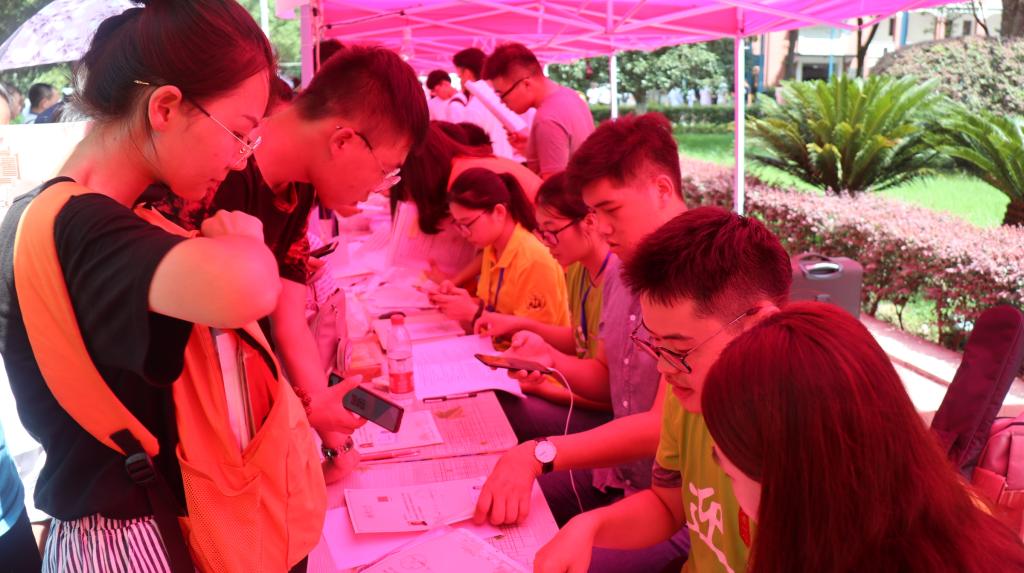8月31日下午,迎新工作正式开始。2018级本科生辅导员王浩与迎新团队成员们在东方红广场与天马员工公寓的迎新工作站有条不紊的迎接着前来报到的新生。公司党委副书记、副经理付蓉芬也来到东方红广场,同新生家长亲切交谈。领导老师的关怀与志愿者们的热情服务,为来自全国各地的新生们带去舒适与清凉。烈日下,迎新团队成员们即使汗如雨下,依旧在为前来报到的新生们热情服务。夜深人静,迎新站灯火通明,团队成员在凌晨时分仍等待着新生们的到来。