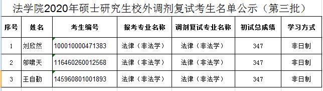 根据《球友会2020年硕士研究生复试录取工作实施细则》,经公司研究生招生工作领导小组审定,现将公司2020年非全日制法律硕士校外调剂复试考生名单(第三批)公示如下,复试时间定于6月9日14:30-16:30,请同学们做好准备(具体请见球友会网站的复试录取工作实施细则及考生复试操作手册)。
