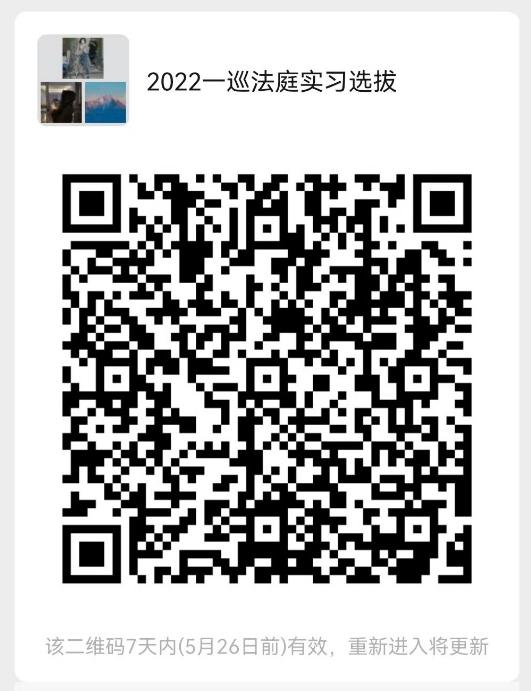 六、报名事项:报名采取个人自愿报名的方式,有意向的同学请于 5 月 22 日20:30 前将附件1《法律实习生推荐表》、附件2《法律实习生报名推荐汇总表》发送至研会邮箱 fxyyh@hnu.edu.cn,报名推荐表除“在校表现及公司审核意见”一栏外均需填写,命名方式为“一巡实习+本人姓名+专业班级”。报名的同学请扫描下方二维码加群,后续面试时间及地点将在群内通知,请大家及时关注。