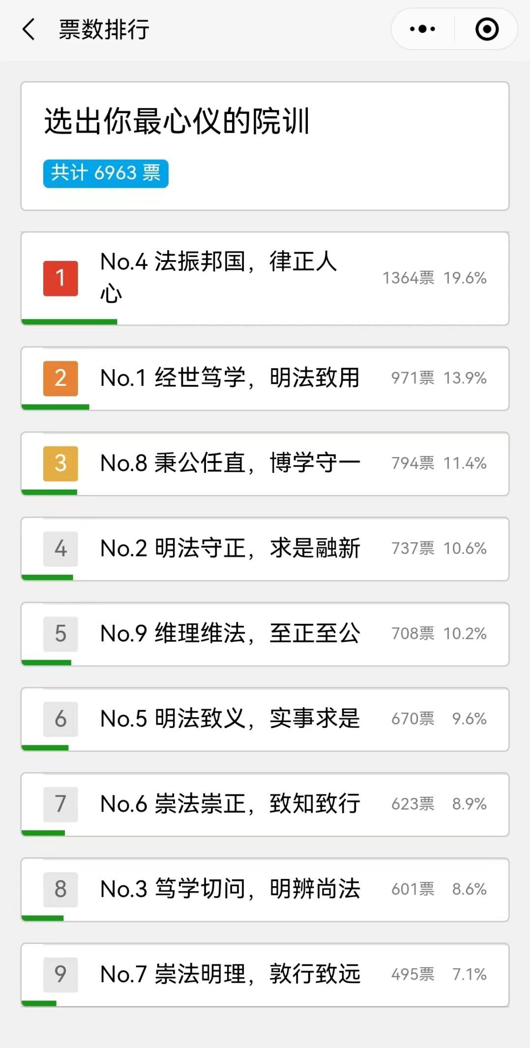 为进一步挖掘凝炼公司的办学理念与特色,增强全体师生职工的荣誉感与使命感,传承湖湘文化“传道济民、经世致用”传统,推进落实公司“双一流”建设,内聚合力、外树形象,通过向qy球友会全体师生、院友及关心本院发展的社会各界人士征集院训。经一个多月的网络投票,结果如下: