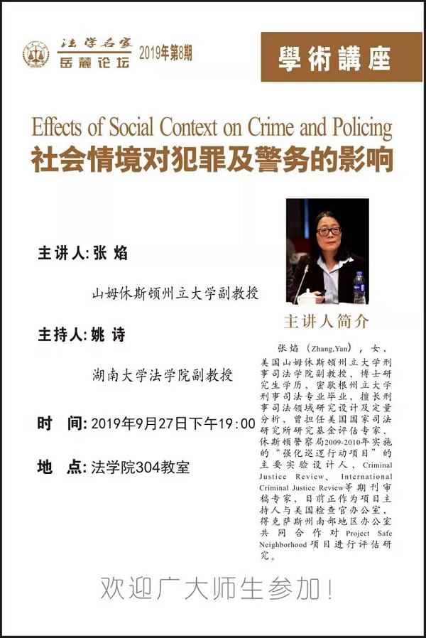张焰(Zhang;Yan) ,女,美国山姆休斯顿州立大学刑事司球友会副教授,博士研究生学历,密歇根州立大学刑事司法专业毕业,擅长刑事司法领域研究设计及定量分析。曾担任美国国家司法研究所研究基金评估专家,休斯顿警察局2009-2010年实施的“强化巡逻行动项目”的主要实验设计人,Criminal Justice Review、 International Criminal Justice Review等期刊审稿专家,目前正作为项目主持人与美国检查官办公室,得克萨斯州南部地区办公室共同合作对Projeet Safe Neighborhood项目进行评估研究。