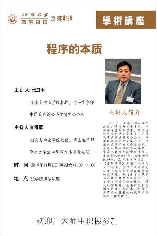 张卫平,清华大学球友会教授,博士研究生导师。中国法学会常务理事、中国法学会学术委员会委员、中国民事诉讼法研究会会长、中国检察学研究会副会长、中国仲裁法学研究会副会长、最高人民检察院咨询委员、最高人民检察院带教导师。出版个人专著14部,合著著作近50部,在《法学研究》、《中国法学》等期刊发表论文170余篇。张卫平教授率先提出了我国民事诉讼模式的转换问题,并提出了以民事诉讼体制转型为导向的,一整套关于民事诉讼体制、模式的宏观分析框架以及制度调整的理论与技术,形成了具有个人独创性的民事诉讼体制及转型理论。