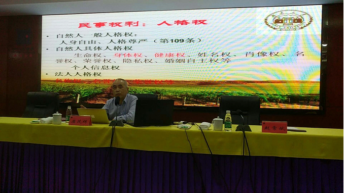 2018年4月1日,受永州律师协会邀请,,qy球友会经理、博士生导师屈茂辉教授专程赴永州开办题为《民法总则适用的重点及难点》的学术讲座。