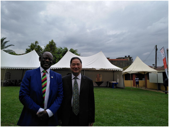 (张智辉教授与麦克雷雷大学董事长Barnabas Nawangwe的合影)