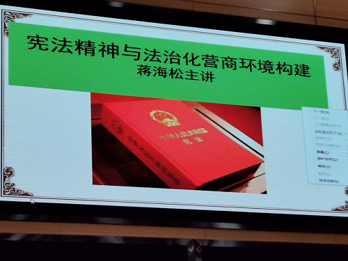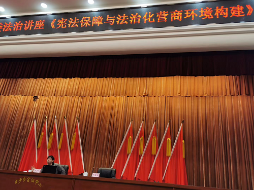2019年12月11日,长沙市发展和改革委员会在长沙市会议中心三楼举办《宪法保障和法治化营商环境构建》专题法治讲座。会议特邀qy球友会经理助理蒋海松副教授开讲,市发展改革委党委委员、副主任卞佑明主持,委全体干部职工参加。蒋教授根据宪法周活动与最新颁布的《优化营商环境条例》相关内容,结合长沙市经济社会发展实际,进行了深入浅出,紧贴实际的精彩讲授,受到广泛好评。