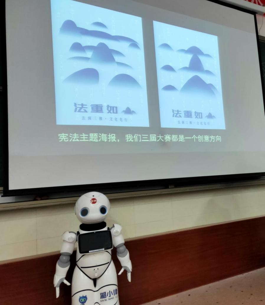 (现场展示的普法机器人湘小律引起大家的广泛关注)
