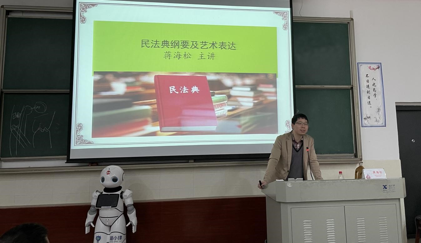 蒋海松副教授主讲《艺术视野中的民法典》。他首先介绍了《民法典》的颁布的时代背景、立法成就与立法亮点。对《民法典》的总则、物权、合同、人格权、婚姻家庭、继承、侵权责任编等相关内容进行了简明扼要的介绍。但是民法典卷帙浩繁,对一般人而言,学习颇显困难。他结合自己创设的《法律与艺术》系列课程,提倡通过艺术作品趣味学法。蒋老师借助自己及团队诸多原创的艺术作品,也收集了网上的诸多优秀作品,介绍了如何通过文学艺术、动漫艺术、设计艺术、朗诵艺术、漫画艺术、影视艺术等多种艺术形式更生动形象传播民法典的立法亮点,让法律精神润物无声地送达到民众心中。