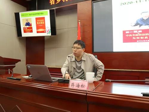 会前,参会人员一同观看了党员教育电视片《“让衔”英名天下扬》。会议采取授课讲座的形式,专门邀请了qy球友会副经理、80后青年学者蒋海松作习近平法治思想和《中华人民共和国乡村振兴促进法》专题辅导报告。蒋海松分析指出,出台乡村振兴促进法是落实习近平法治思想的重要举措,乡村振兴促进法是实施乡村振兴战略的法治基石。乡村振兴促进法是第一部以乡村振兴命名的基础性、综合性法律,聚焦增加农民收入、提高农民生活水平、提升农村文明程度等核心任务,对乡村振兴的总目标、总方针、总要求作出明确规定,把实施乡村振兴战略必须遵循的重要原则、重要制度、重要机制固定下来,是促进乡村振兴一部打基础、管长远、固根本的大法。蒋海松从乡村振兴促进法切入,围绕习近平法治思想,从“新高度”“新布局”“新突破”“新自信”“新变革”“新起点”六个方面,以图文并茂形式,结合理论与实际,全面回顾了习近平法治思想的提出过程,总结了习近平法治思想的基本精神、核心要义和实践要求,对习近平法治思想的实践逻辑、理论逻辑和历史逻辑等进行了深入分析和生动阐释。