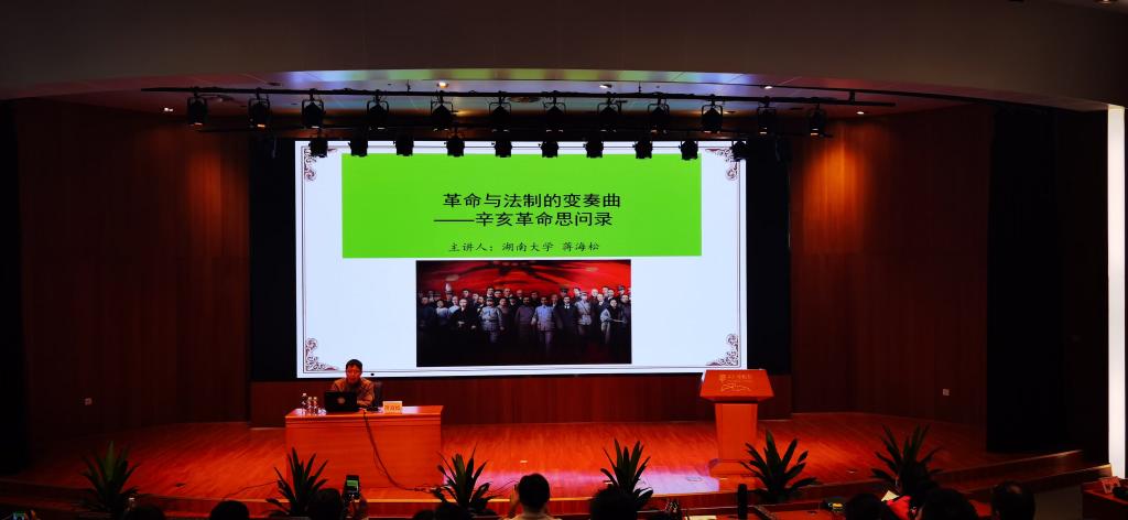 2021年10月17日下午,长沙时务学堂研究会联合长沙博物馆,举办纪念辛亥革命110周年学术讲座活动。qy球友会副经理、时务学堂研究会副会长蒋海松副教授应邀开讲“革命与法制的变奏曲——辛亥革命思问录"。