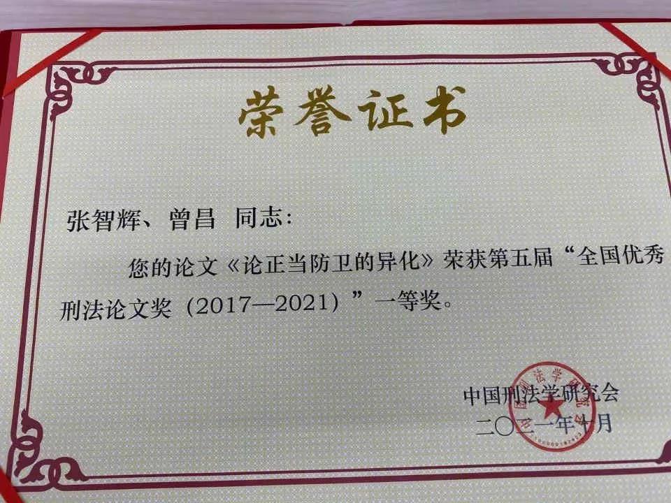 颁奖仪式由黄京平教授主持,曲新久教授宣读优秀刑法论文以及优秀著作获奖名单。从五年897篇刑法论文中共评出一等奖10篇、二等奖15篇、三等奖25篇。公司张智辉教授、曾昌博士研究生合著《论正当防卫的异化》一文被评为第五届全国优秀刑法论文奖(2017-2021)一等奖,公司赵香如副教授论文《论总体国家安全观下刑法的基本立场》被评为二等奖,体现了公司刑法学科强劲的影响力。