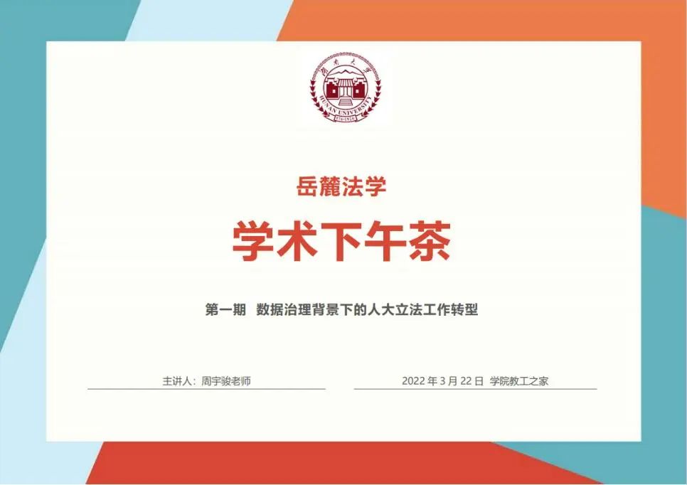 首期学术下午茶聚焦“数据治理背景下的人大立法工作转型”,由周宇骏老师主题分享,王静老师主持交流环节,公司20余名教师报名参加本次活动。