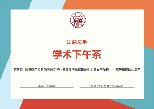 “岳麓法学-学术下午茶”第五期|法律适用经验的法教义学化及其在法秩序形成中的意义与作用